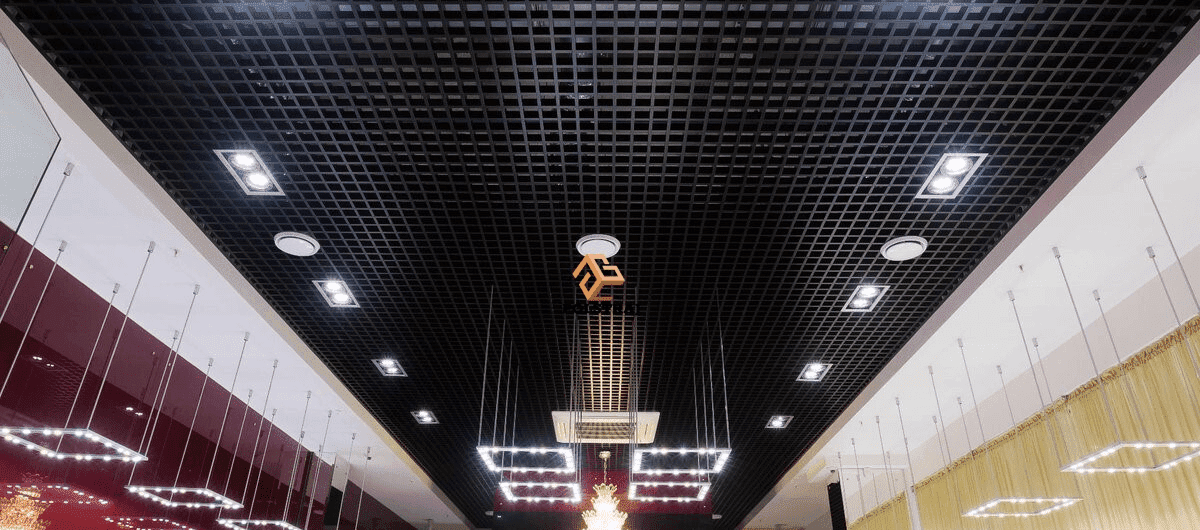 - The use of open metal ceilings allows you to create various options for lighting systems, the use of lamps of various types, including lamps built into the space behind the suspended ceiling. This allows the creation of a variety of lighting effects and generally broadens the possibilities in interior design